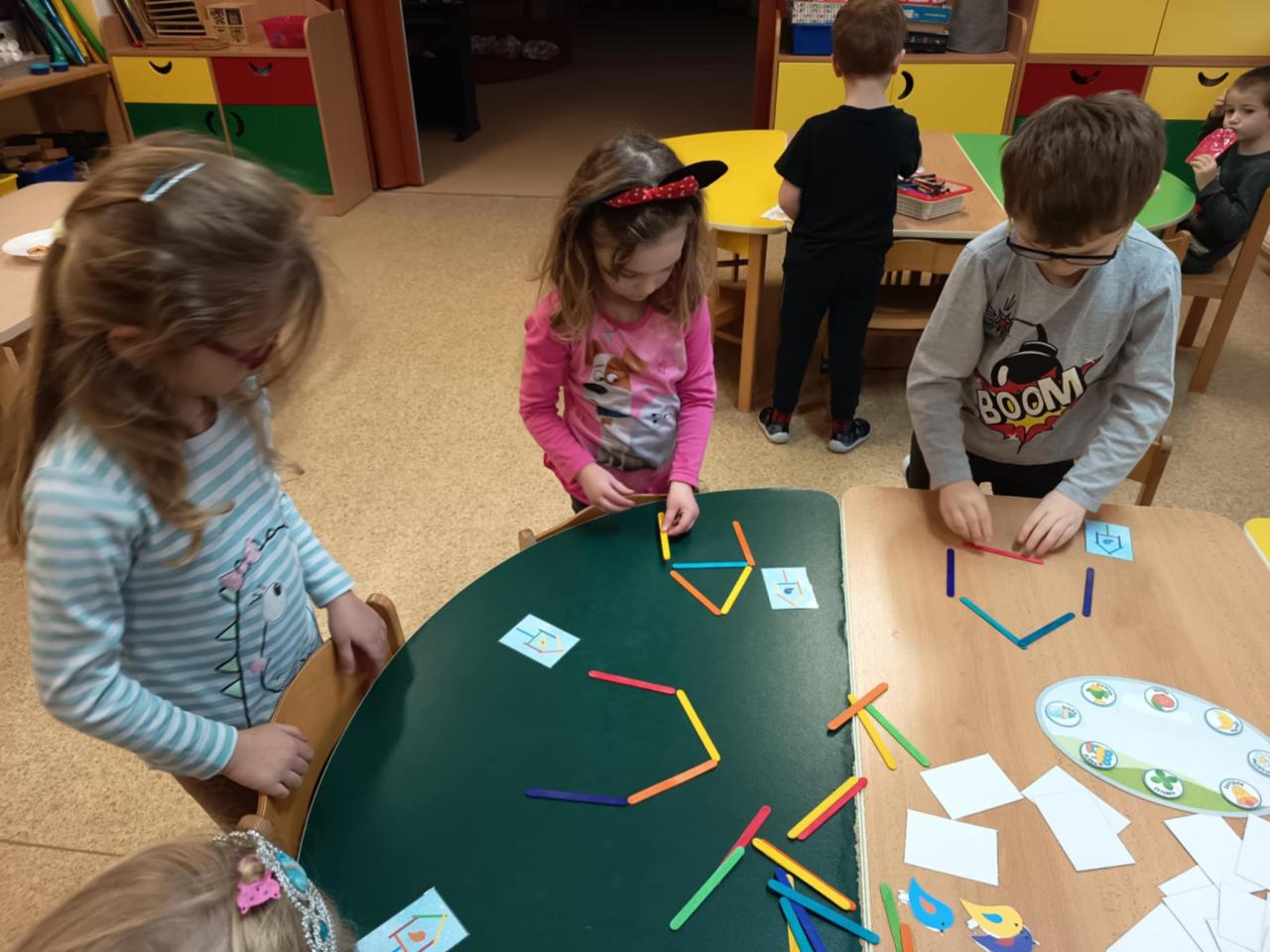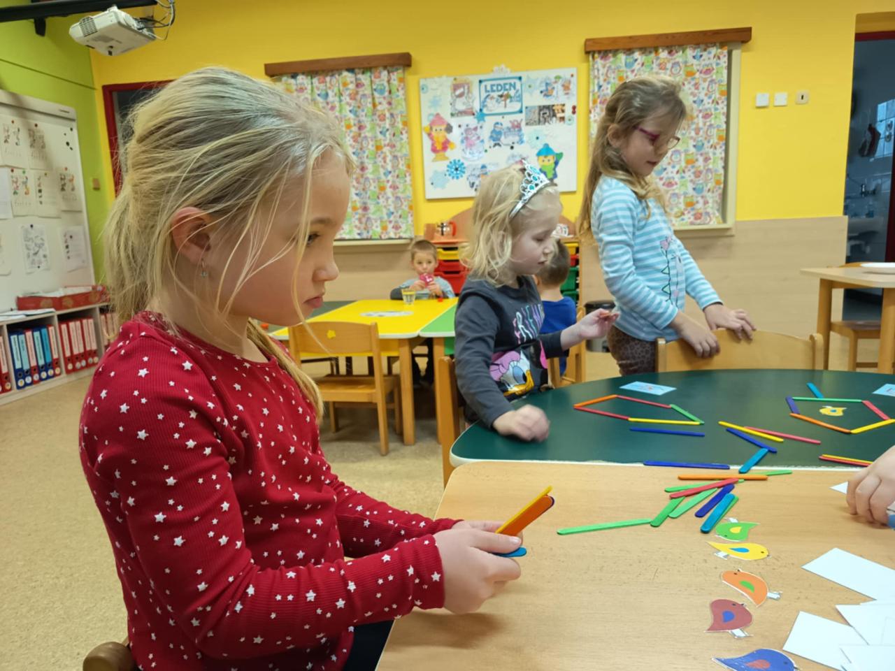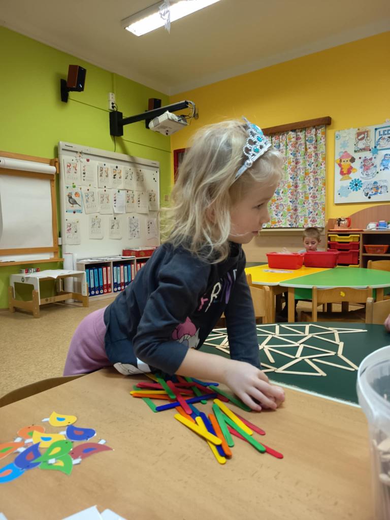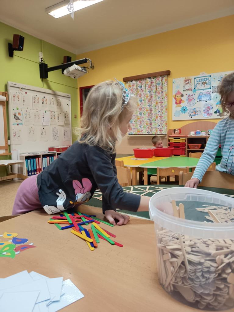 I takové odpoledne ve školce se dá parádně využít a stačí málo...barevné nanukové špachtle, obrázky se vzory a ptáčky pro skládání s podmínkou a nakonec i spousta kreativity a fantazie. Je prima být toho součástí.