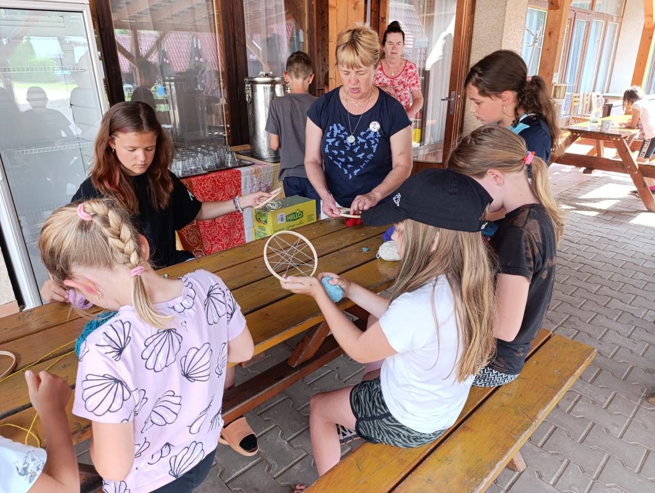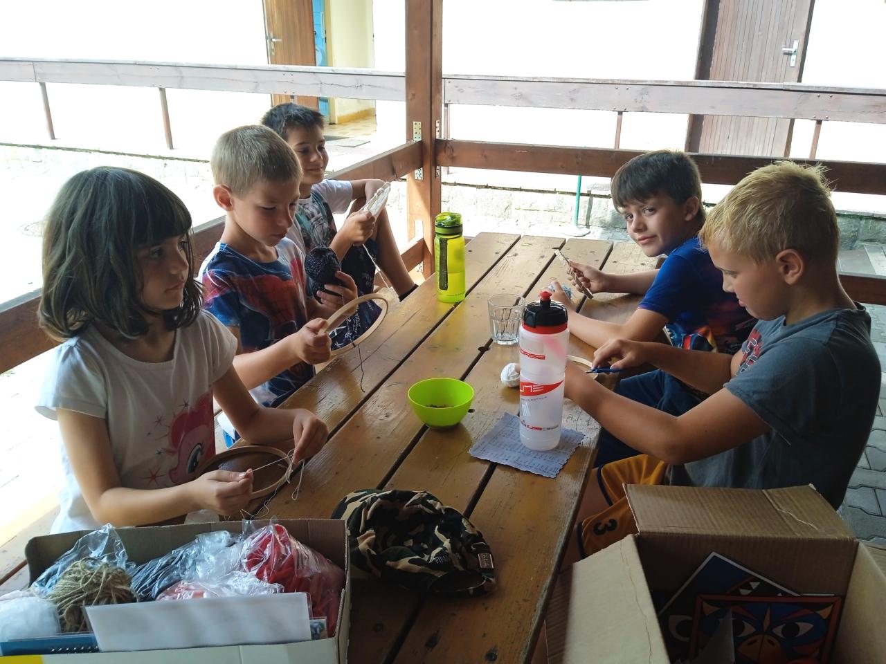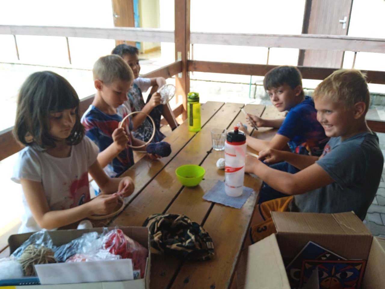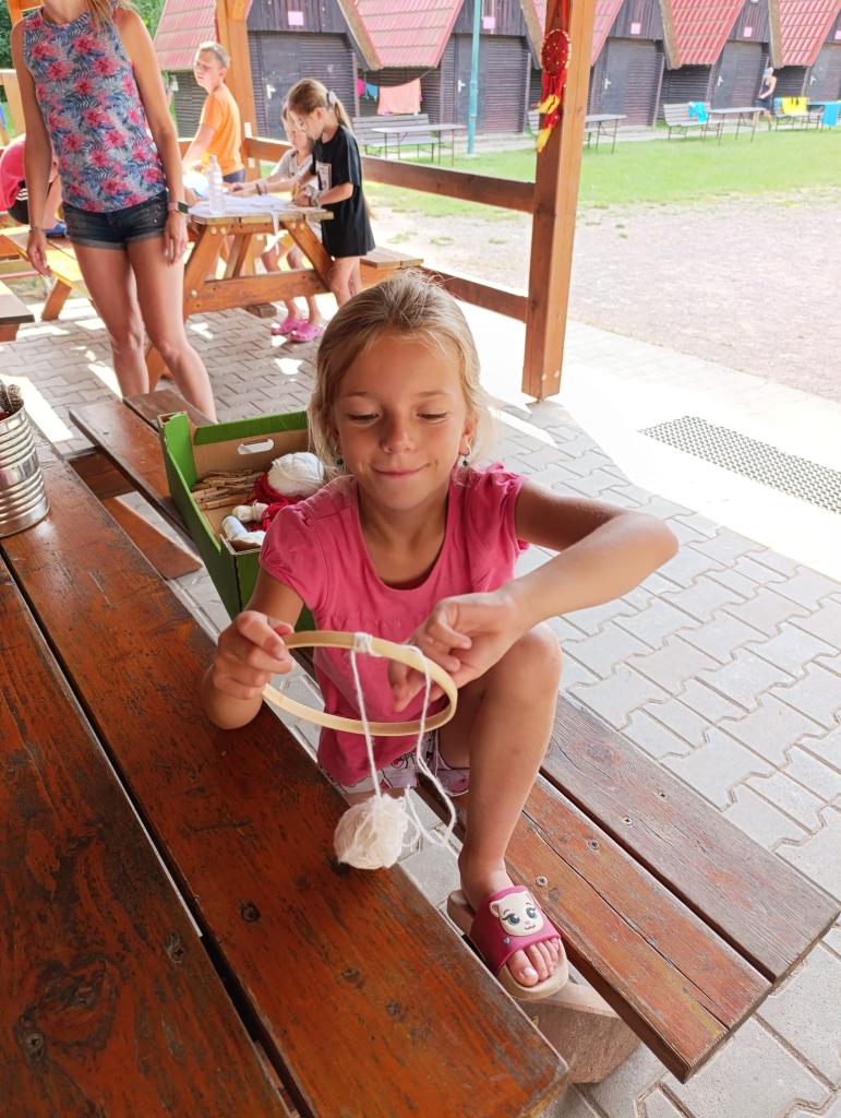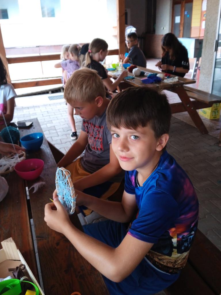 Středeční dopoledne bylo tvořivé, každý si domů odváží krásný lapač snů. Počasí nám přeje, bazén je vyhřátý a odpoledná nás čeká výstup na hrad.