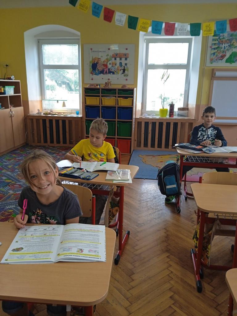 První zářijové dny ve škole, hrajeme si, učíme se.